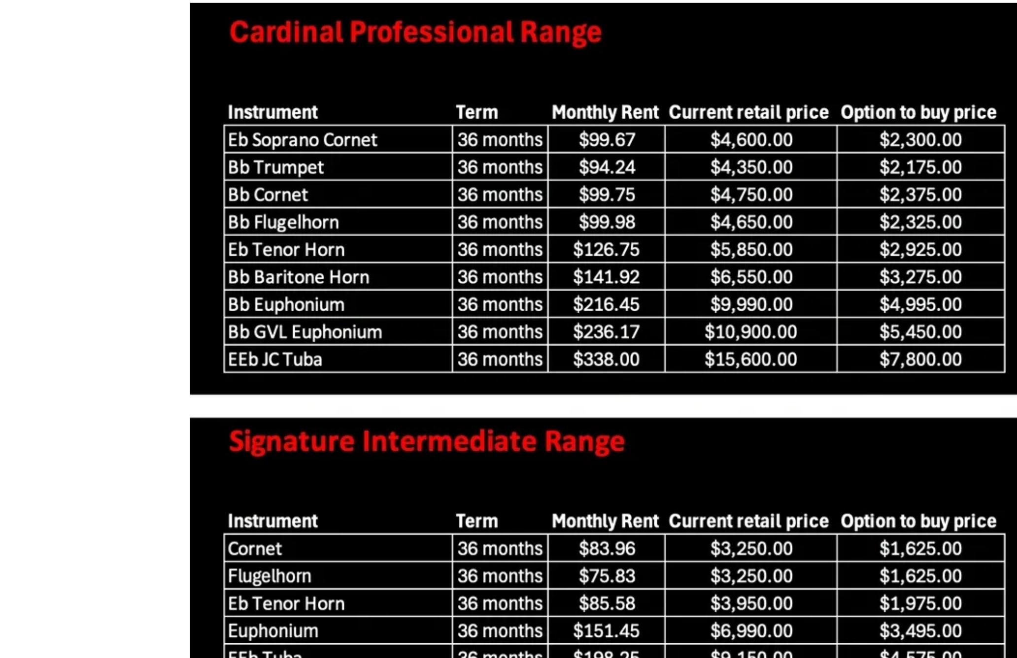 The Cardinal and Heritage range also extend beyond the brass band world with the addition of Trumpets, French Horns, Saxophones, Bassoons, Bass Clarinets and Sousaphones.